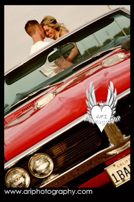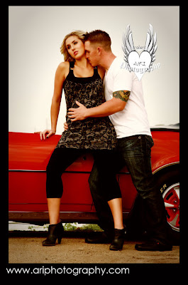 Just loved this shoot! Here are a few of my favorites engagement photos of Ashley and Jared. My two baby boys and I went off roading a few days before to try to find the perfect location. I'm happy with the feel the location and car gave to the shoot. Ashley is actually a professional car model and following with the bright red theme, Jared is a Firefighter:) They both LOVE cars and funny enough Ashley was excited to see that the car I got for them was a Fire bird- apparently the first car she ever owned and LOVED! Glad we could bring some sentimentality to the engagement shoot beside the obvious love they have for each other. Cant wait to shoot their wedding- this is such an edgy couple! Soooo Ari Photography!!